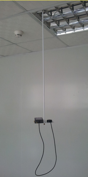 ? ? ?標尺掛鉤制作采用一根1m長的空心鐵管,一邊焊接一段鐵絲作為掛鉤,便于掛在紫外線燈管上。另一段用一塊厚1mm,寬140mm* 長170mm 的鐵板,作為放置儀器探頭和儀器的平臺。儀器的探頭上有磁鐵,可以吸在鐵板上,鐵板上固定幾顆銅柱,以便固定儀器,不至于移動過程中儀器跌落。