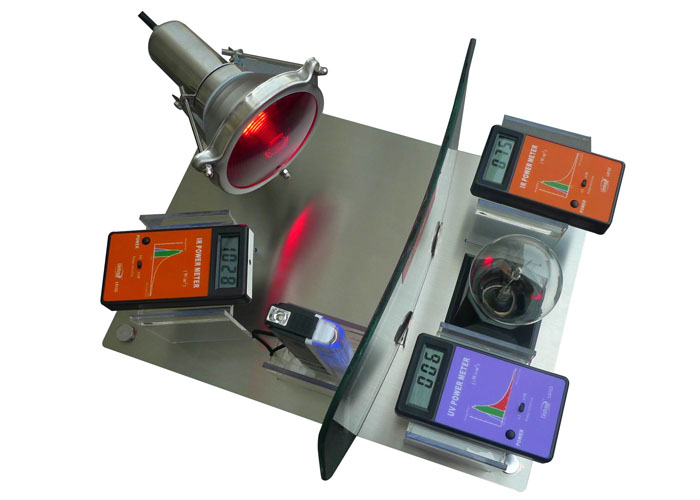 一臺(tái)LS123測(cè)試太陽膜,隔熱玻璃等的隔紫外能力。