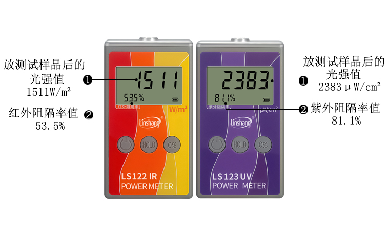 3. 紅外功率計(jì)和紫外功率計(jì)自動(dòng)換算阻隔率,讀數(shù)簡單易懂。