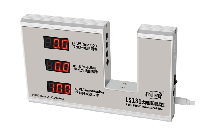 林上廠家供應(yīng)LS181太陽(yáng)膜測(cè)試儀,適用于汽車窗膜透光率檢測(cè)和紫外線紅外線阻隔率測(cè)試,平行光路設(shè)計(jì),測(cè)試數(shù)據(jù)不受樣品放置位置影響,是一款高精度的汽車膜檢測(cè)儀。LS181太陽(yáng)膜測(cè)試儀的測(cè)試原理是采用紫外光源,可見光源和紅外光源照射被測(cè)透明物質(zhì),感應(yīng)器分別探測(cè)三種光源的入射光強(qiáng)和透過被測(cè)透明物質(zhì)后的光強(qiáng),透過光強(qiáng)與入射光強(qiáng)的比值即為透過率,用百分?jǐn)?shù)表示。大多數(shù)的太陽(yáng)膜,可見光標(biāo)注透過率指標(biāo),紅外線和紫外線標(biāo)注阻隔率指標(biāo),阻隔率=100%-透過率。LS181太陽(yáng)膜測(cè)試儀直接測(cè)量和顯示紫外線的阻隔率,紅外線的阻隔率和可見光透過率,方便讀數(shù)和理解。