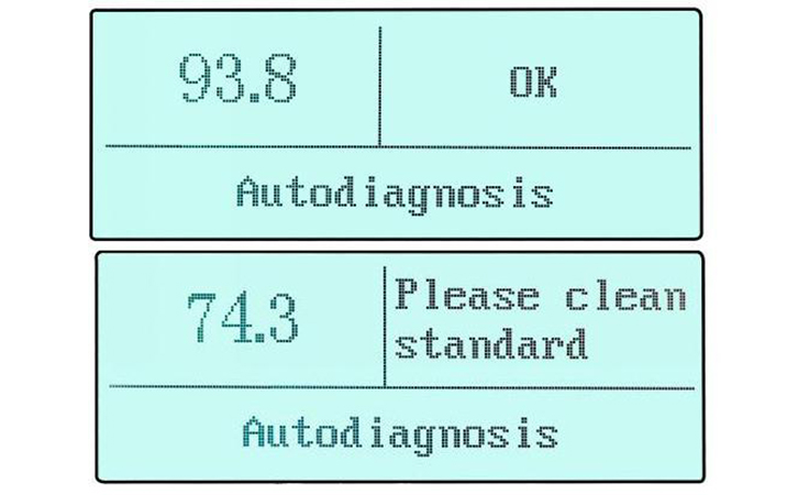 如操作界面顯示英文“Please clean standard”則表示自檢時(shí)標(biāo)準(zhǔn)板的值不在合格范圍內(nèi)。